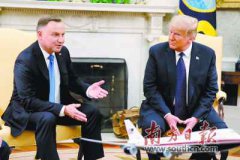 6月24日,在美国华盛顿白宫,美国总统特朗普(右)和波兰总统杜达举行会谈,