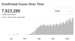 根据世卫组织最新实时统计数据,截至欧洲中部夏令时间6月15日19时35分(北京时