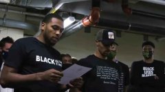 雄鹿队球员宣读罢赛声明。 视频截图 南都讯 记者汪雅云 北京时间27日早上,湖