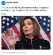 (原标题:佩洛西说美国杀死伊朗将军存在危险升级的风险) 【环球网快讯】据法