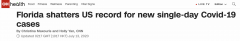 12日,美国佛罗里达州新增新冠肺炎确诊病例至少15,299例,刷新了自疫情开始以